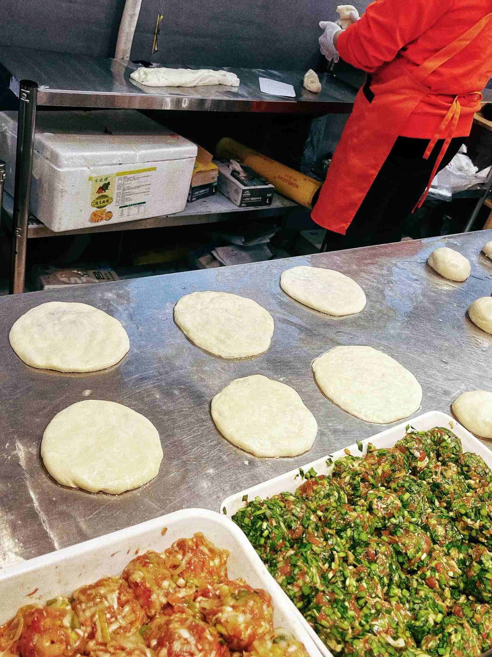 包馅:在面皮上放入适量的馅料,封口捏紧。可以包成包子形状再轻轻按平,也可以用其他喜欢的方式封口。