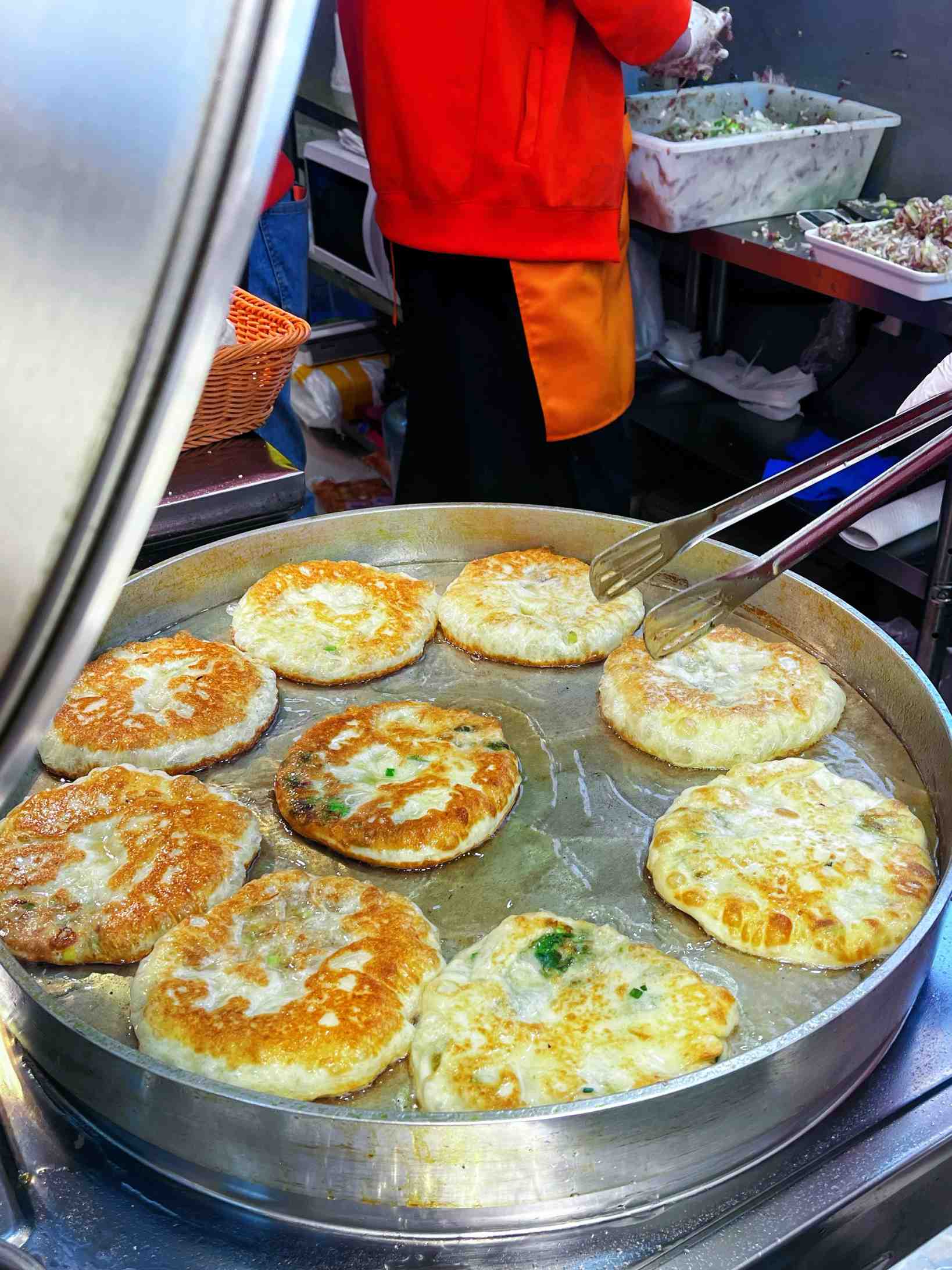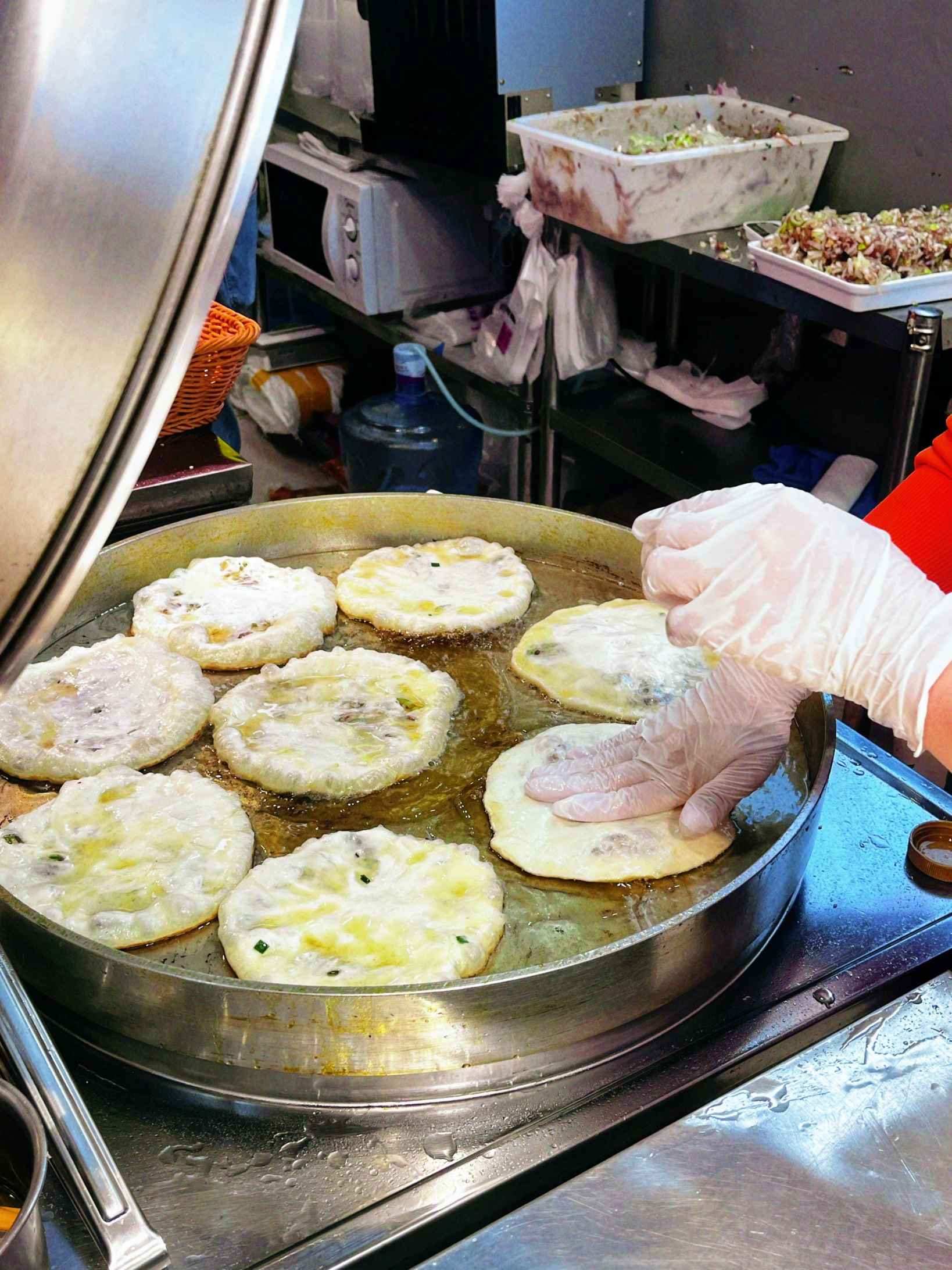煎饼:平底锅烧热后刷上一层薄薄的油,将包好的韭菜肉饼放入锅中,小火慢煎。待饼底部煎至金黄色时,翻面继续煎另一面。煎至两面都呈金黄色且内部馅料完全熟透时,即可出锅享用。